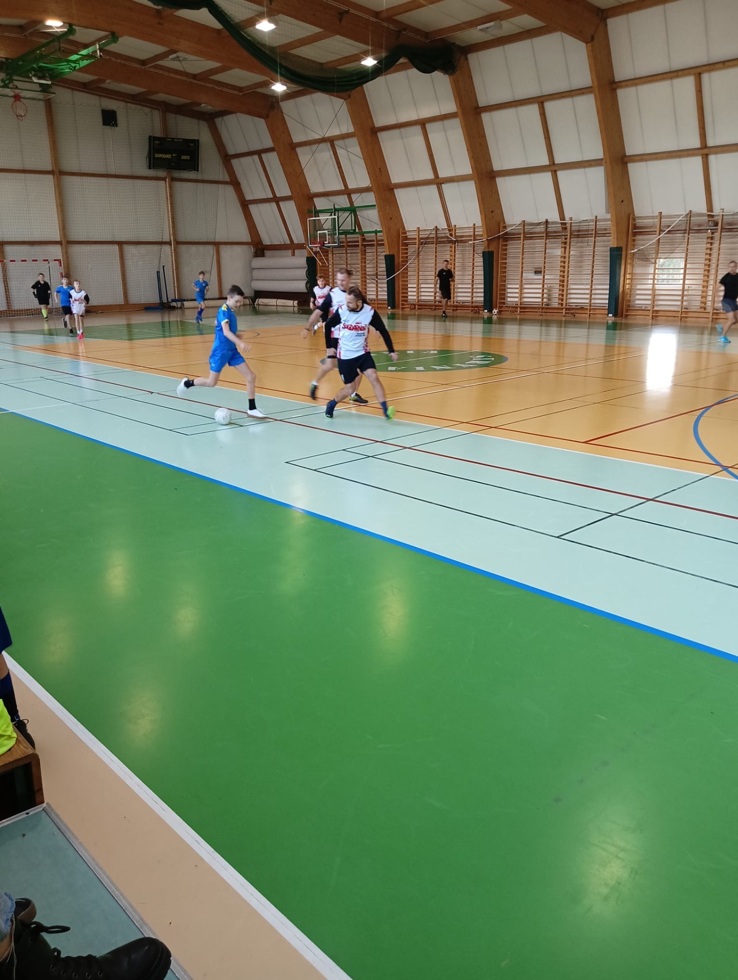 W sobotnie przedpołudnie, 7 grudnia 2024 roku, w naszej hali sportowej odbyła się druga edycja Mikołajkowego Turnieju Piłki Nożnej, tym razem w nowej formule. Drużyny składały się z reprezentacji uczniów i rodziców poszczególnych klas, co zapewniło wyjątkową atmosferę rywalizacji i współpracy. Mecze piłki nożnej dostarczyły wielu pozytywnych emocji, choć nie prowadzono klasyfikacji generalnej – najważniejsza była wspólna zabawa i integracja.