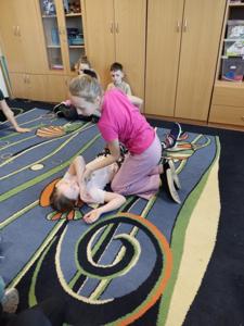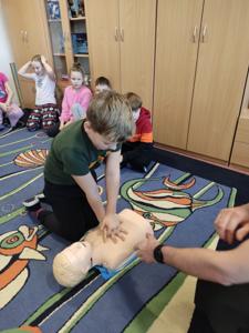 Podczas zajęć dzieci miały okazję nie tylko poznać teoretyczne podstawy pierwszej pomocy, ale także przećwiczyć zdobyte umiejętności w praktyce.